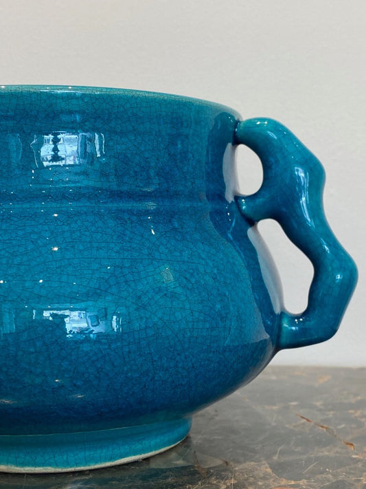 Pol Chambost (1906-1983), Coupe Aux Anses Animalières En émaux Craquelés Bleus Chinois