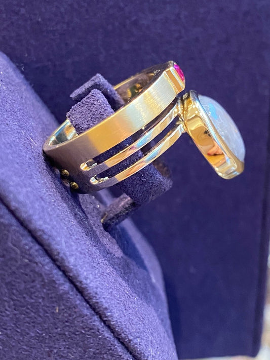 Janine Renard (1947), Bague Moderniste Nacre Et Rubis