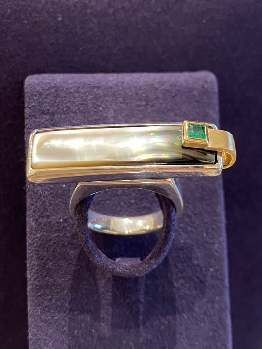 Janine Renard (1947), Bague Moderniste nacre et émeraude