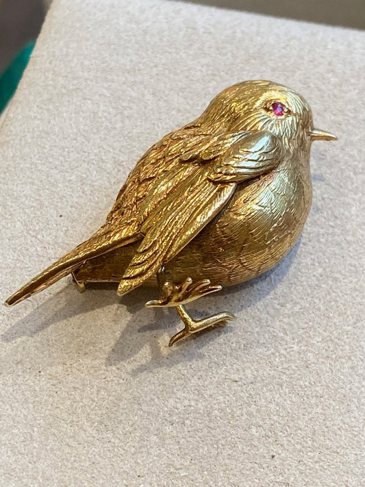 HERMES, BROCHE VINTAGE PERROQUET ARGENT & OR