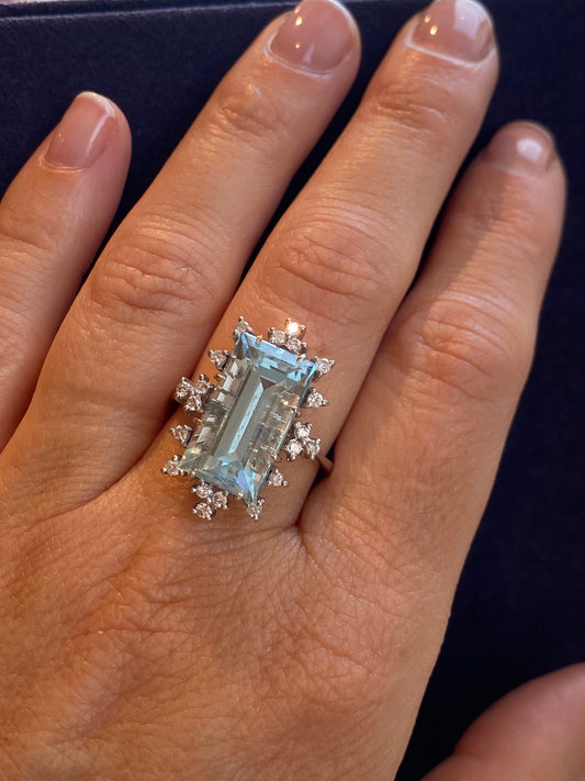 BAGUE COCKTAIL AIGUE-MARINE & DIAMANTS 70'