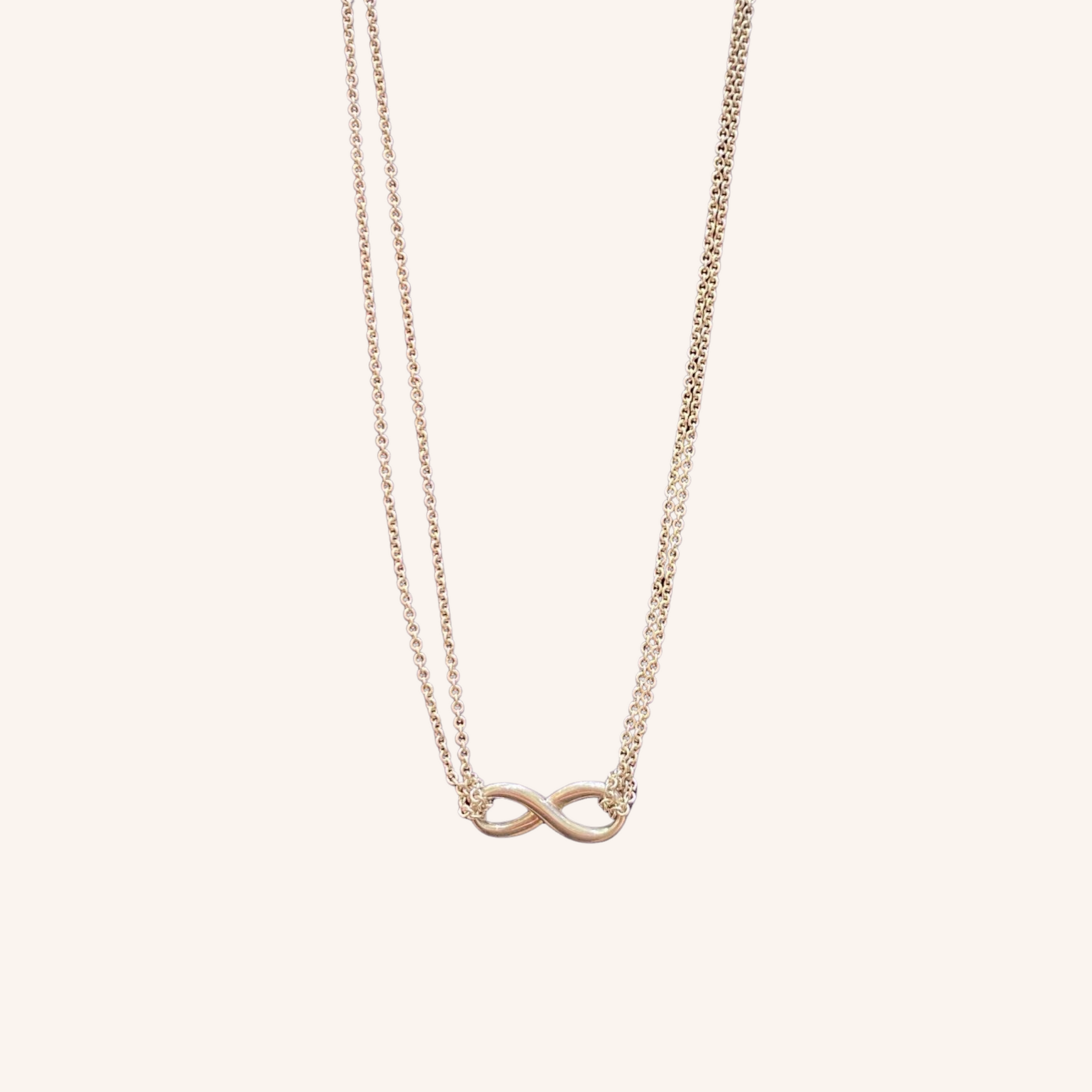 Tiffany and Co., 925 sterling silver multi-chain necklace with an infinity motif in its center.