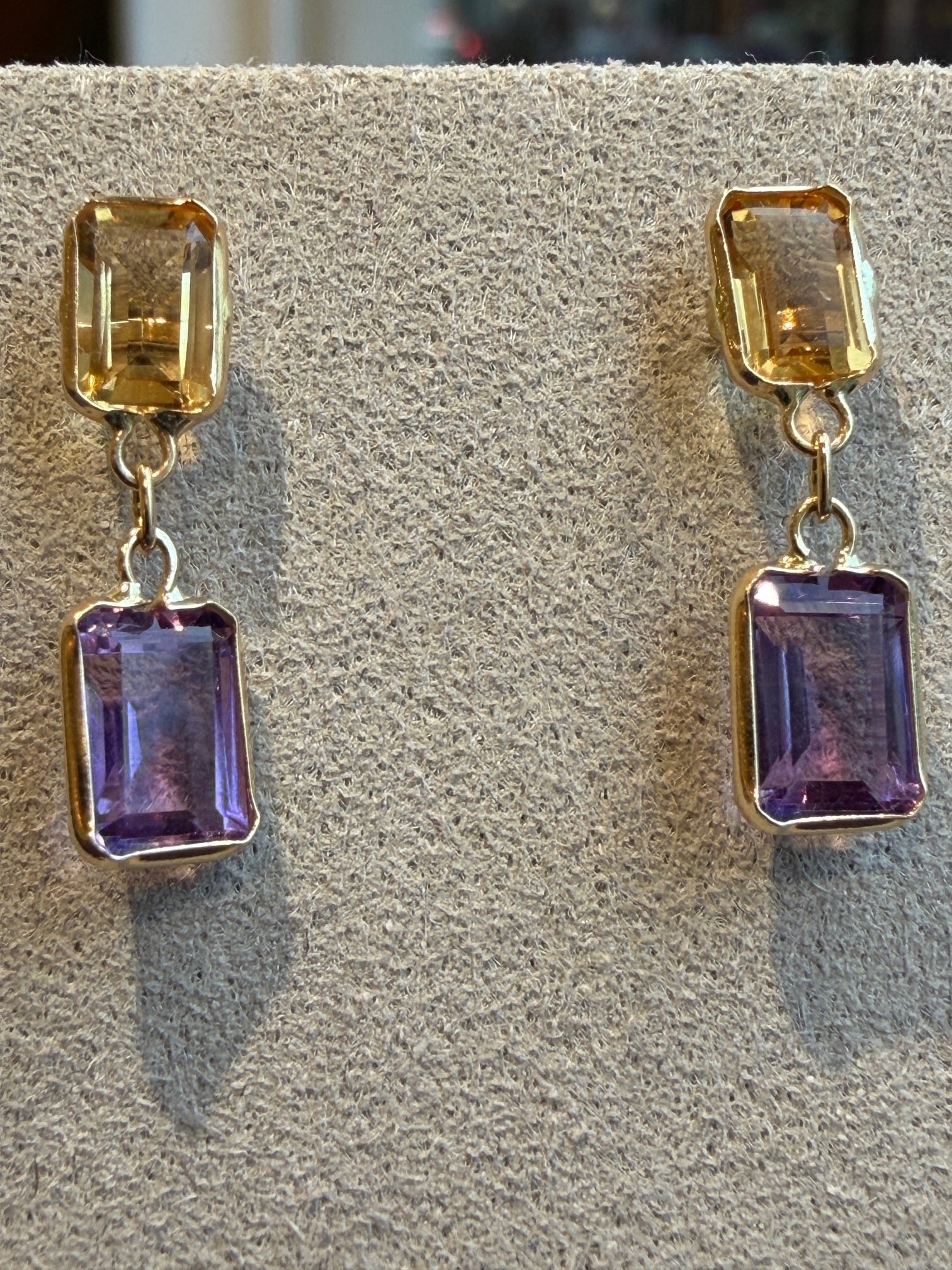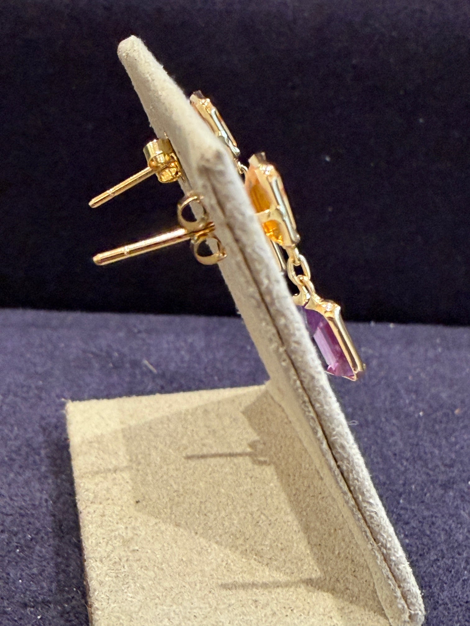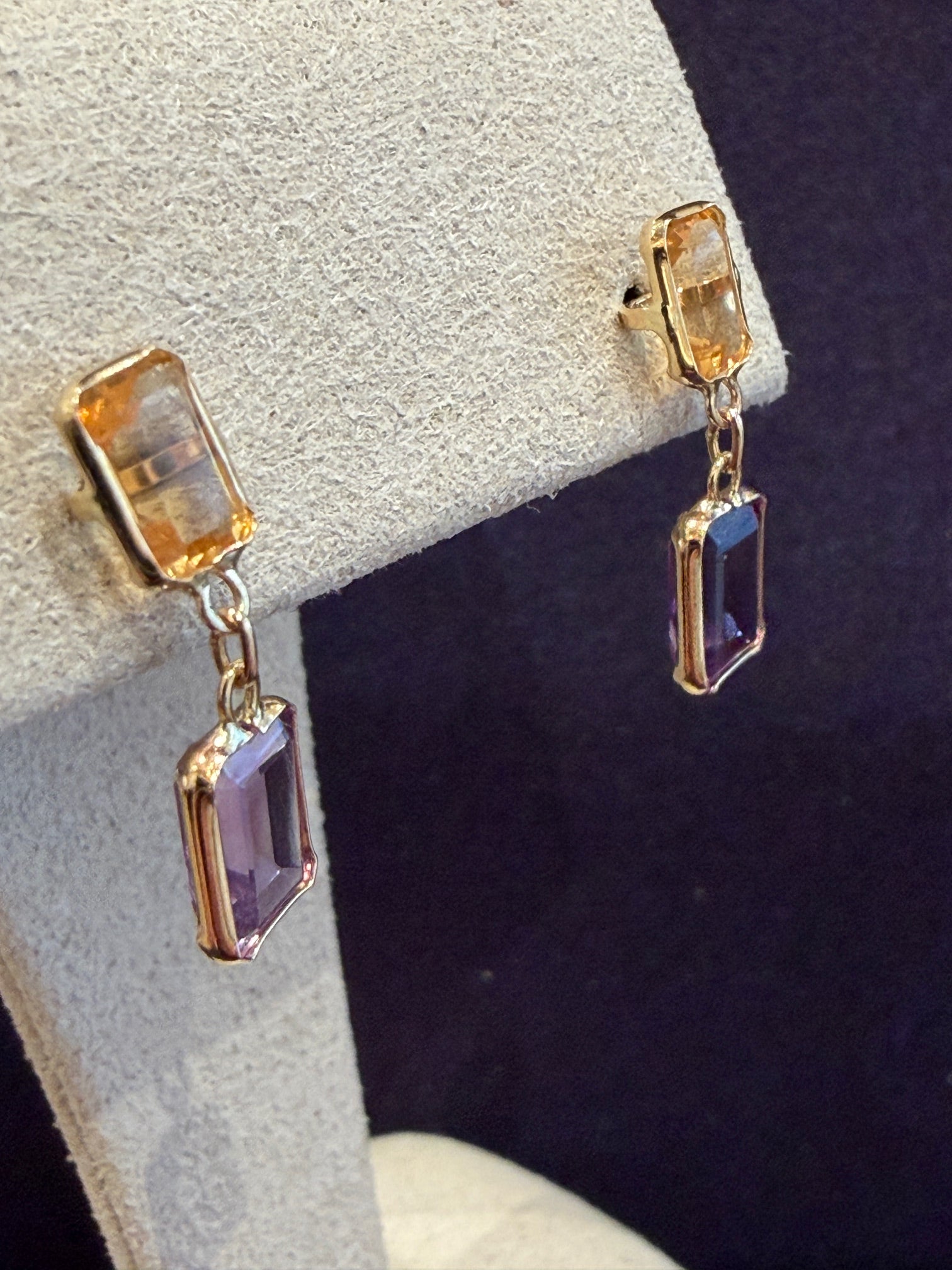 BOUCLES D'OREILLES EN OR CITRINES & AMETHYSTES