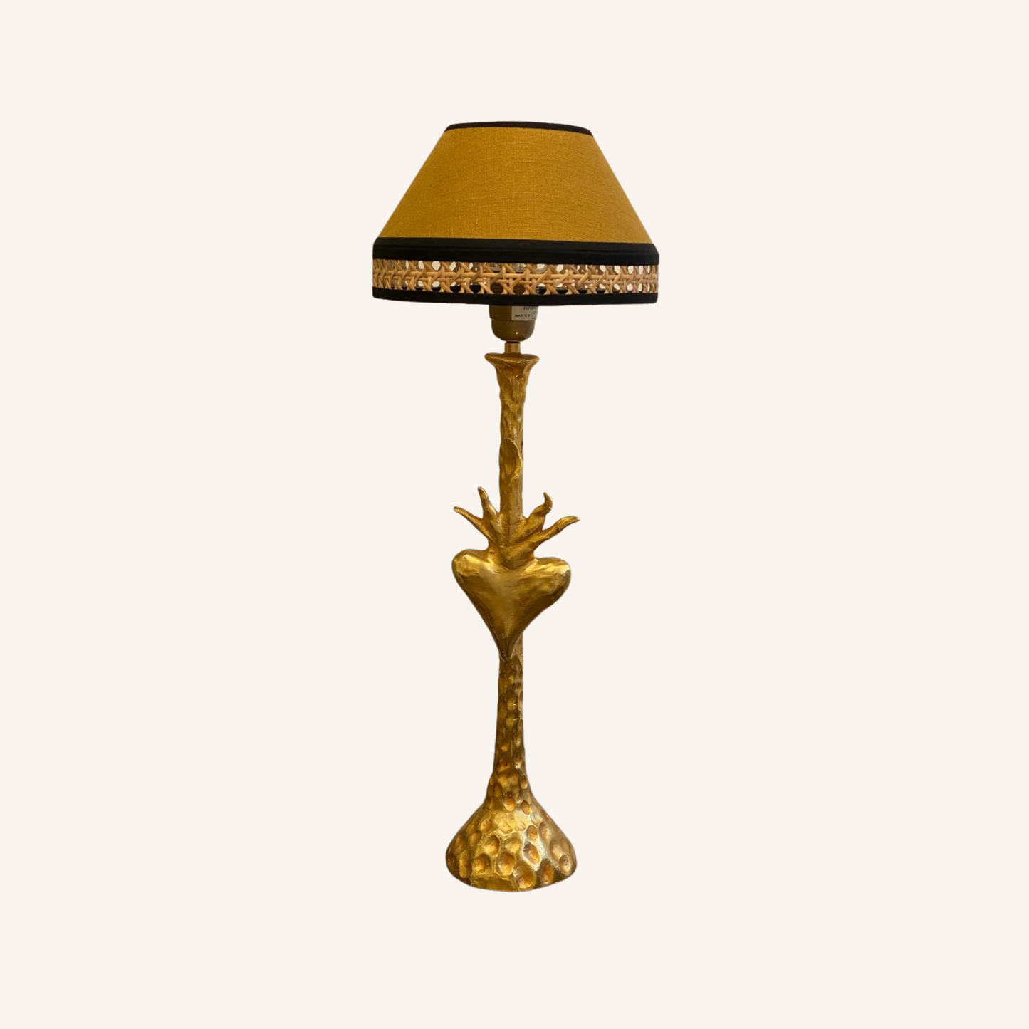 FONDICA éditeur, Lampe de table en fonte dorée ornée d'un coeur flamboyant stylisé